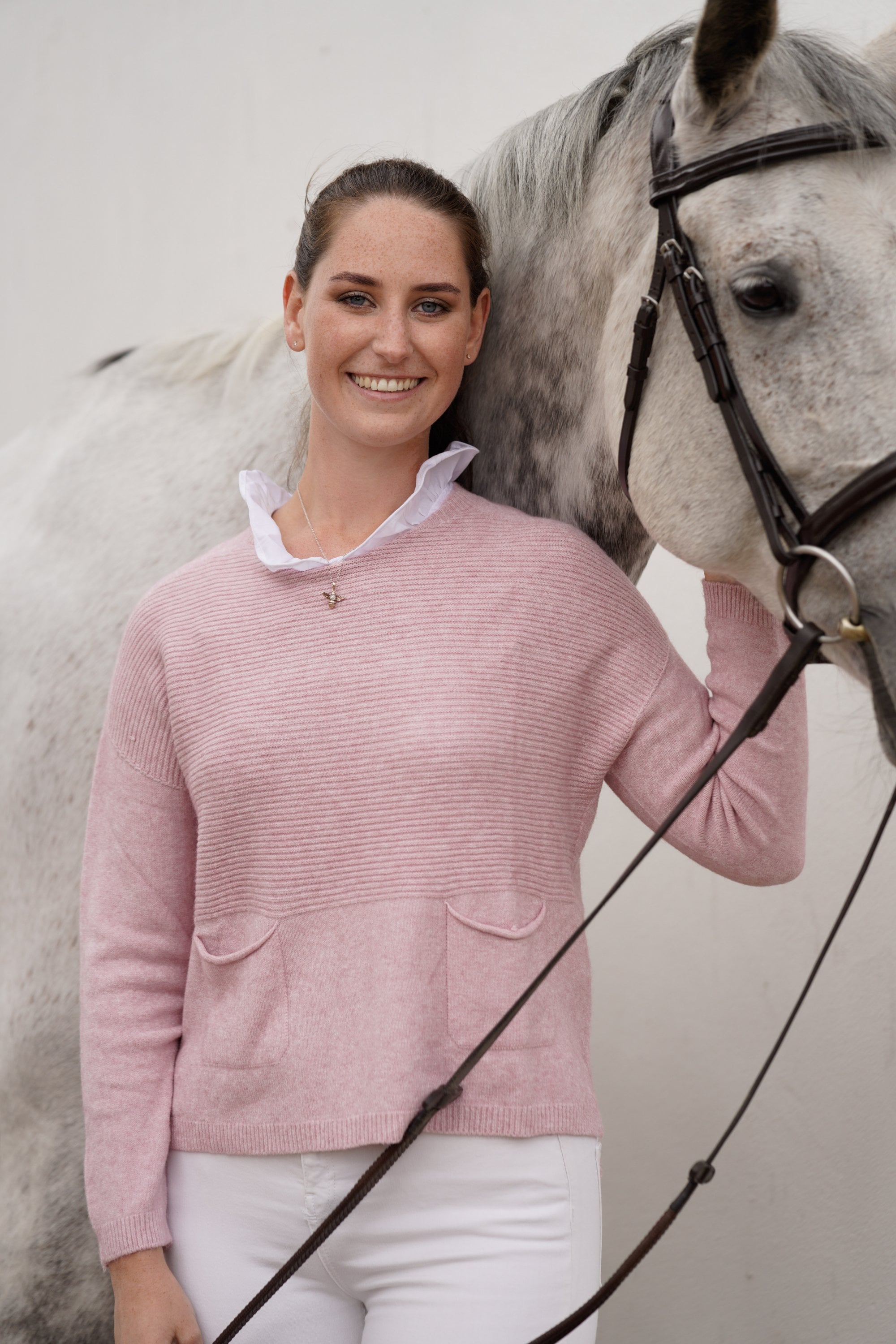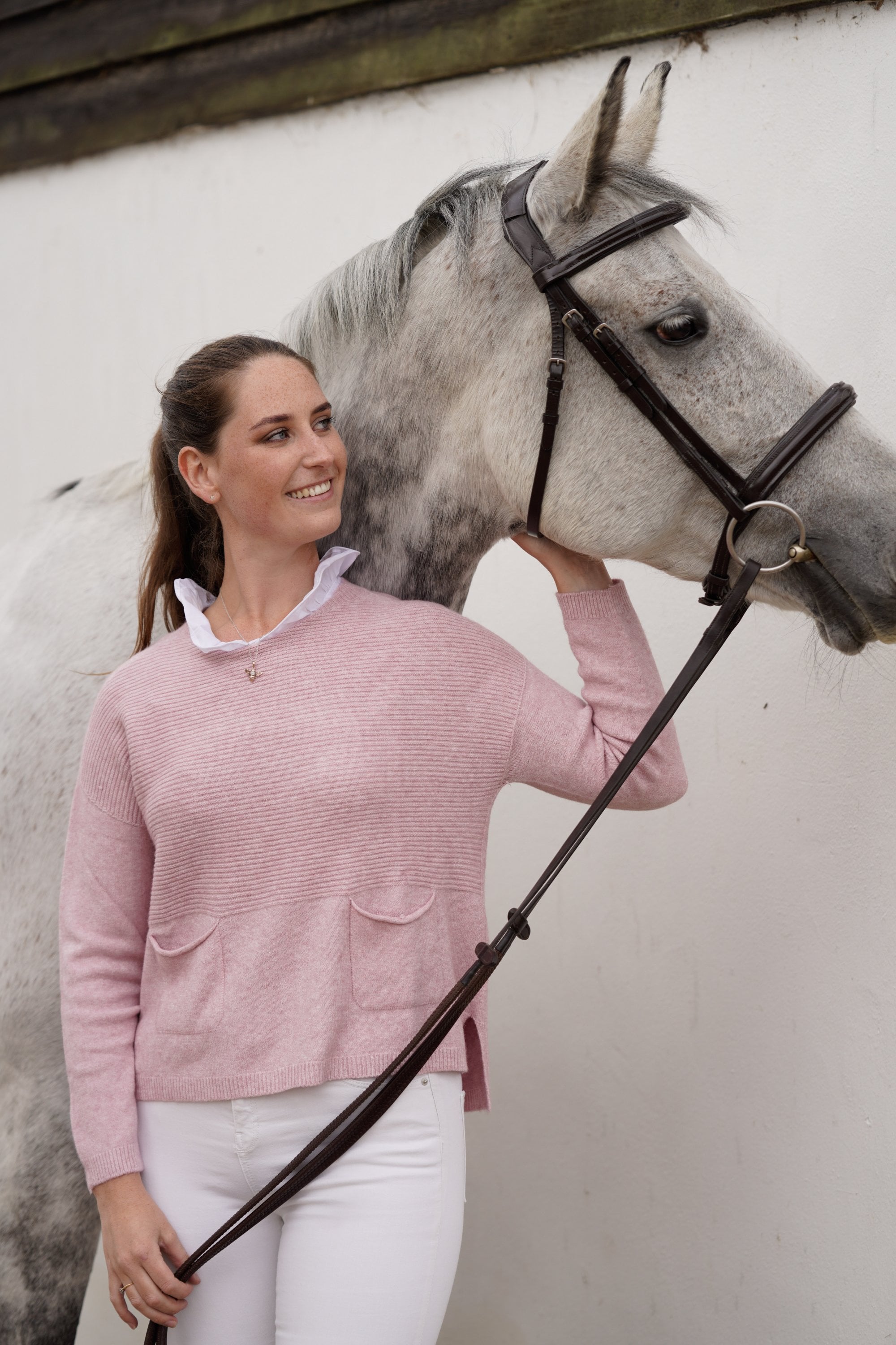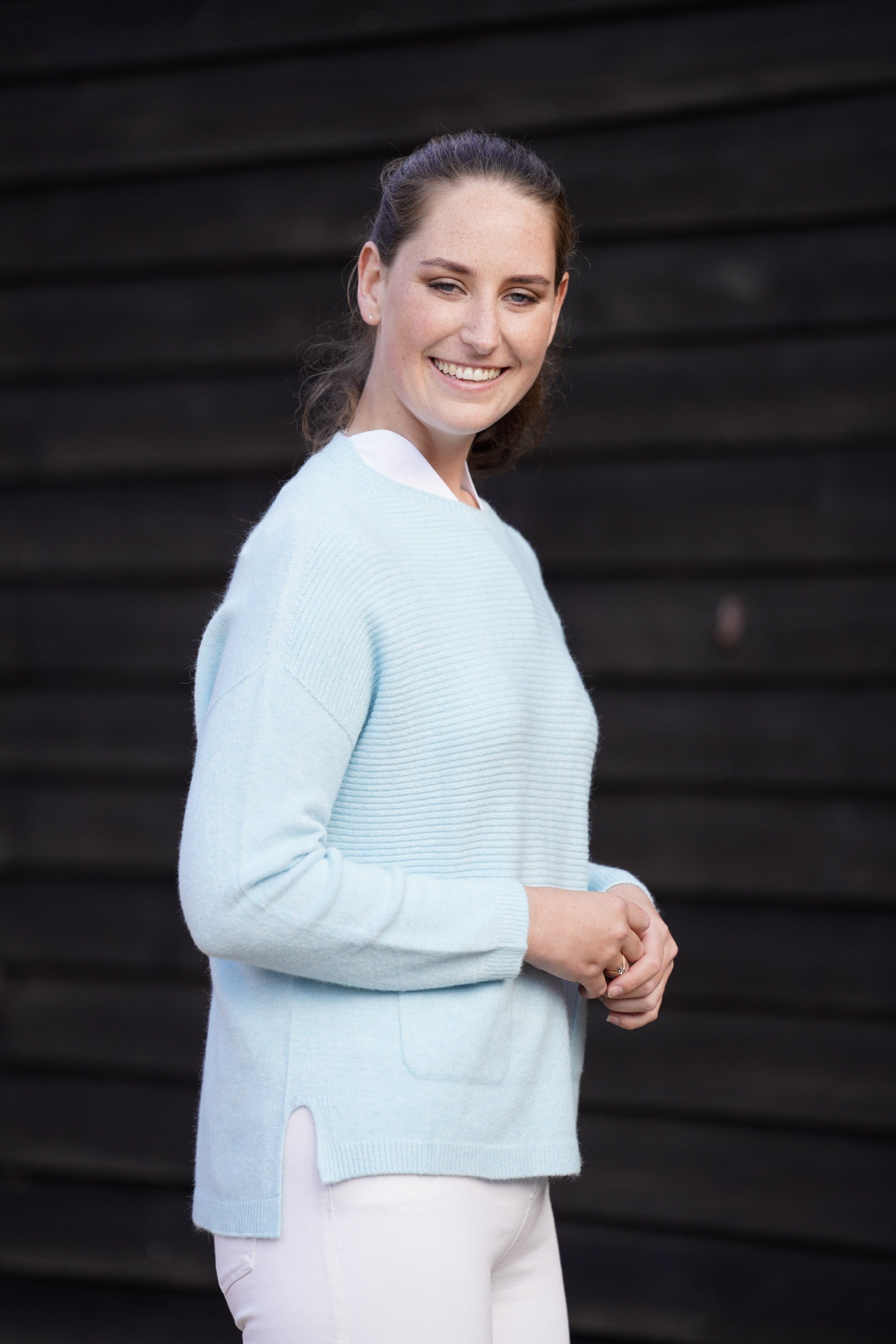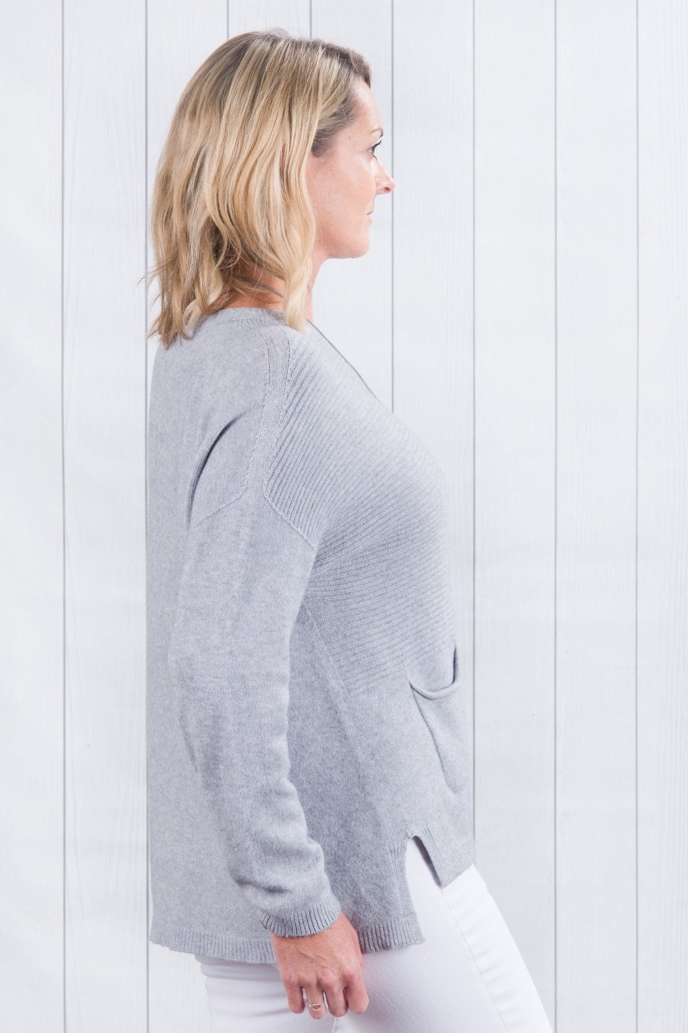 Our Amelia ribbed jumper with two pockets at the front, is both stylish and casual. A really great loose fitting jumper, wear layered with a shirt and scarf or on its own. A good length to wear everyday with jeans and trainers, boots or pumps. A casual fitting jumper that can be dressed up or down. A very flattering loose shape. A wonderful addition to your wardrobe. Wear it daytime or evening. We love to wear ours with our shirt collar Mandy. It's super soft and cosy!!