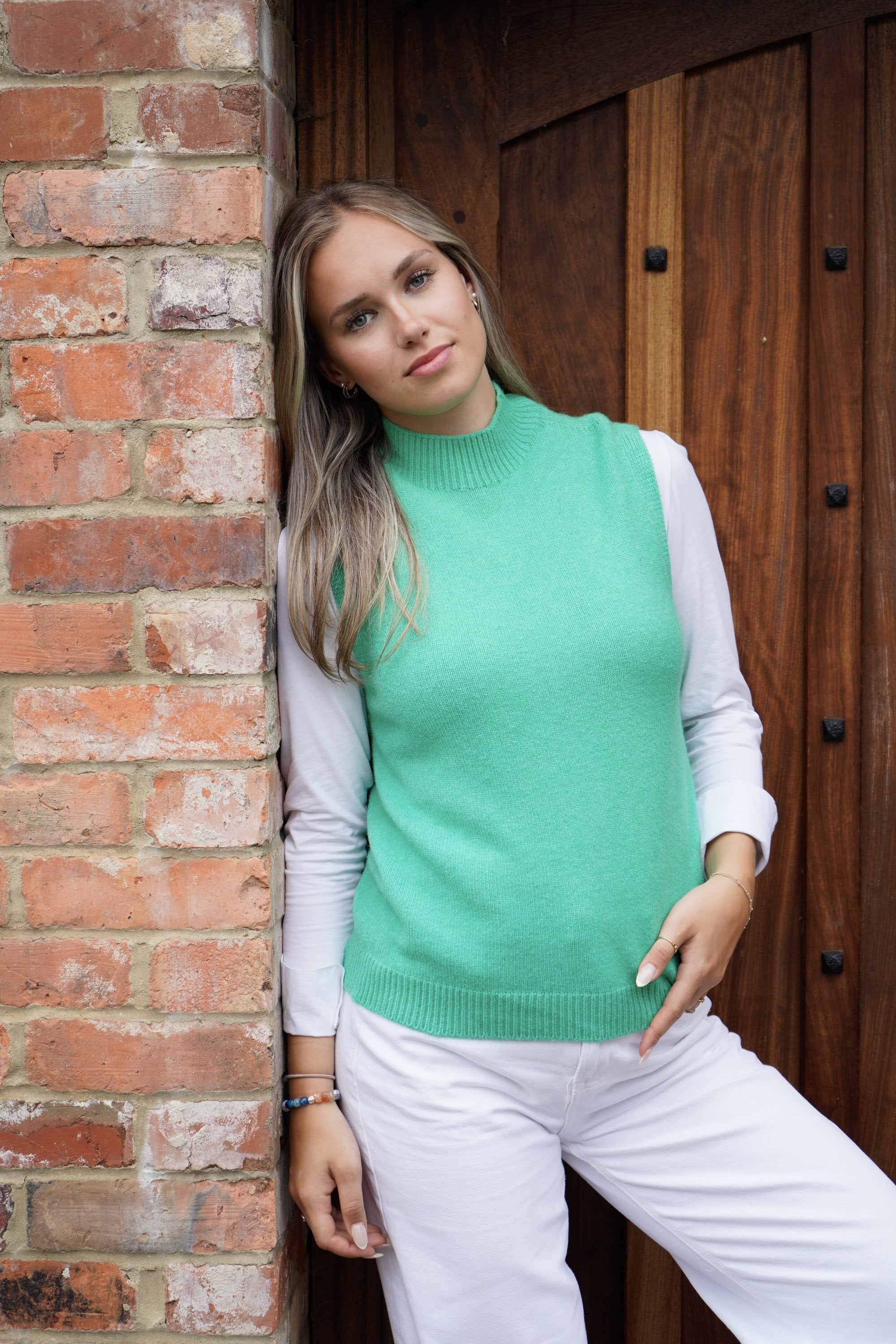 Knitted from soft Italian fabric, the Vera tank offers an effortless blend of luxury and comfort. This timeless layering piece adds a touch of warmth and elegance to any outfit, making it a must-have for year-round styling. Wear it alone in milder weather with chinos or denim shorts, or layer it over a crisp white shirt for a sophisticated look. For a perfectly coordinated outfit, pair it with our pleated skirt to create a beautifully matched, polished ensemble. Alternatively, style it with our Madison ruffle neck blouse for an elevated layered look when the temperatures drop. A truly versatile knit you can wear now and later, designed to complement any wardrobe.